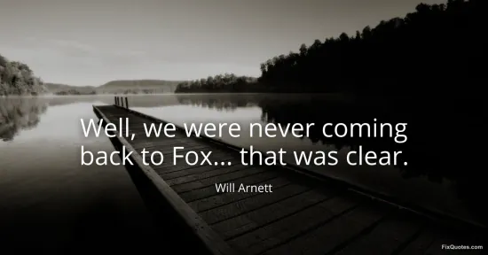 Arnett, Will. "Well, we were never coming back to Fox... that was clear." FixQuotes. January 15, 2026. https://fixquotes.com/quotes/well-we-were-never-coming-back-to-fox-that-was-163526/.