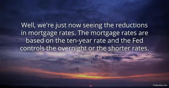 Raines, Franklin. (2026, January 15). Well, we're just now seeing the reductions in mortgage rates. The mortgage rates are based on the ten-year rate and the Fed controls the overnight or the shorter rates. FixQuotes. https://fixquotes.com/quotes/well-were-just-now-seeing-the-reductions-in-154317/