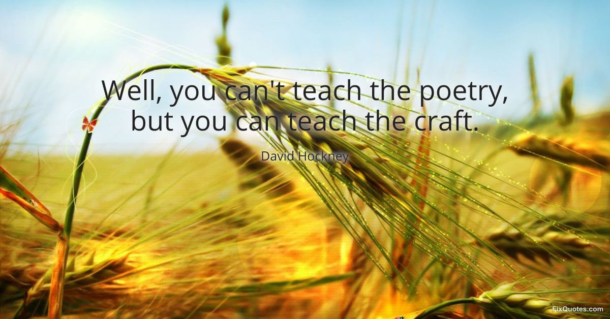 Hockney, David. (2026, February 16). Well, you can't teach the poetry, but you can teach the craft. FixQuotes. https://fixquotes.com/quotes/well-you-cant-teach-the-poetry-but-you-can-teach-143528/