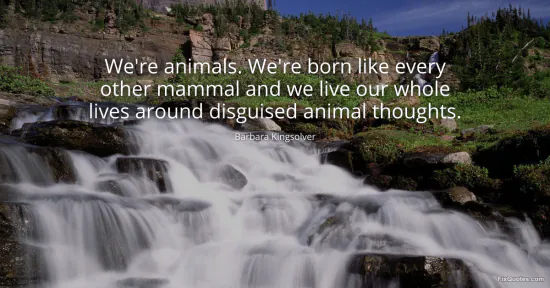 Kingsolver, Barbara. (2026, January 17). We're animals. We're born like every other mammal and we live our whole lives around disguised animal thoughts. FixQuotes. https://fixquotes.com/quotes/were-animals-were-born-like-every-other-mammal-37526/