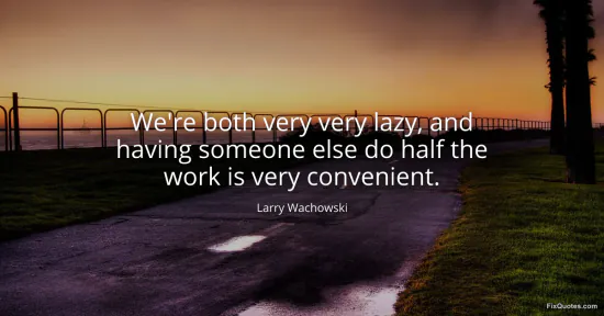 Wachowski, Larry. (2026, January 17). We're both very very lazy, and having someone else do half the work is very convenient. FixQuotes. https://fixquotes.com/quotes/were-both-very-very-lazy-and-having-someone-else-54720/