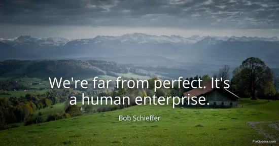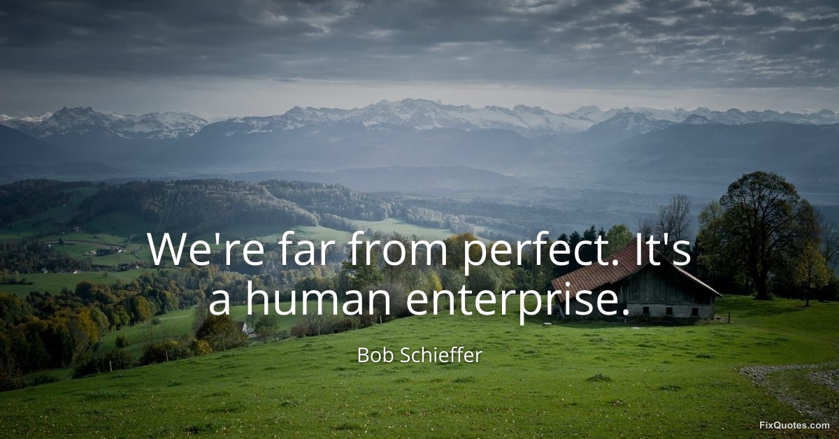 Schieffer, Bob. (2026, January 17). We're far from perfect. It's a human enterprise. FixQuotes. https://fixquotes.com/quotes/were-far-from-perfect-its-a-human-enterprise-44418/