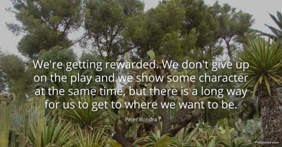 Bondra, Peter. (2026, January 16). We're getting rewarded. We don't give up on the play and we show some character at the same time, but there is a long way for us to get to where we want to be. FixQuotes. https://fixquotes.com/quotes/were-getting-rewarded-we-dont-give-up-on-the-play-135765/