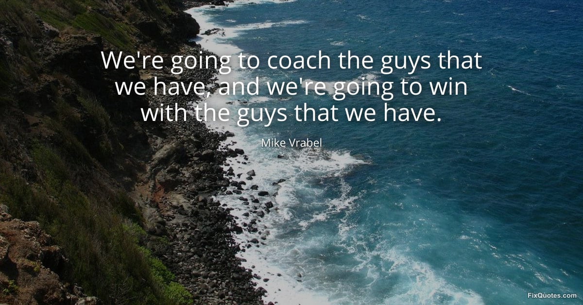 Vrabel, Mike. (2026, February 16). We're going to coach the guys that we have, and we're going to win with the guys that we have. FixQuotes. https://fixquotes.com/quotes/were-going-to-coach-the-guys-that-we-have-and-184523/