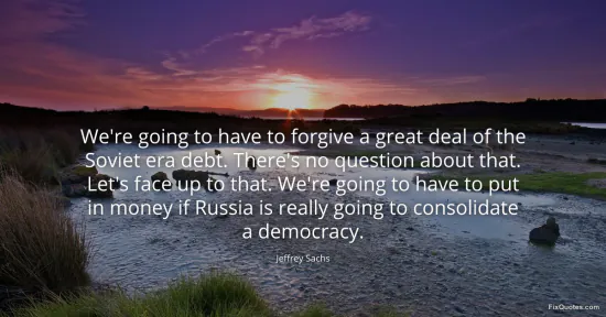 Sachs, Jeffrey. (2026, January 18). We're going to have to forgive a great deal of the Soviet era debt. There's no question about that. Let's face up to that. We're going to have to put in money if Russia is really going to consolidate a democracy. FixQuotes. https://fixquotes.com/quotes/were-going-to-have-to-forgive-a-great-deal-of-the-21646/