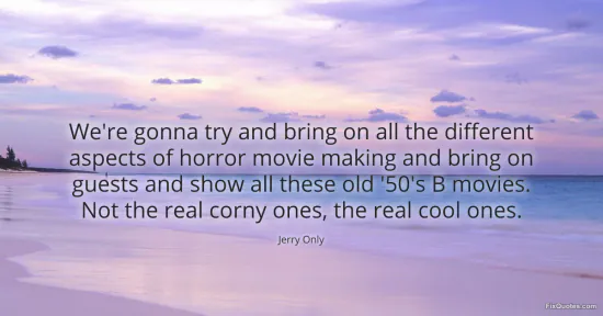 Only, Jerry. "We're gonna try and bring on all the different aspects of horror movie making and bring on guests and show all these old '50's B movies. Not the real corny ones, the real cool ones." FixQuotes. January 17, 2026. https://fixquotes.com/quotes/were-gonna-try-and-bring-on-all-the-different-49855/.