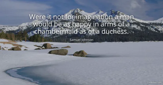 Johnson, Samuel. "Were it not for imagination a man would be as happy in arms of a chambermaid as of a duchess." FixQuotes. January 15, 2026. https://fixquotes.com/quotes/were-it-not-for-imagination-a-man-would-be-as-21114/.
