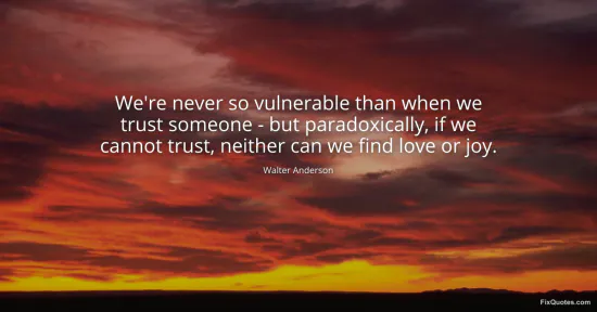 Anderson, Walter. (2026, February 9). We're never so vulnerable than when we trust someone - but paradoxically, if we cannot trust, neither can we find love or joy. FixQuotes. https://fixquotes.com/quotes/were-never-so-vulnerable-than-when-we-trust-3974/