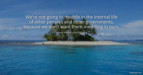 Obrador, Andres Manuel Lopez. (2026, January 17). We're not going to meddle in the internal life of other peoples and other governments, because we don't want them meddling in ours. FixQuotes. https://fixquotes.com/quotes/were-not-going-to-meddle-in-the-internal-life-of-37470/