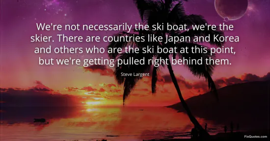 Largent, Steve. "We're not necessarily the ski boat, we're the skier. There are countries like Japan and Korea and others who are the ski boat at this point, but we're getting pulled right behind them." FixQuotes. January 16, 2026. https://fixquotes.com/quotes/were-not-necessarily-the-ski-boat-were-the-skier-97547/.