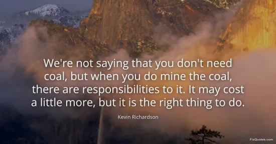 Richardson, Kevin. "We're not saying that you don't need coal, but when you do mine the coal, there are responsibilities to it. It may cost a little more, but it is the right thing to do." FixQuotes. February 16, 2026. https://fixquotes.com/quotes/were-not-saying-that-you-dont-need-coal-but-when-62312/.