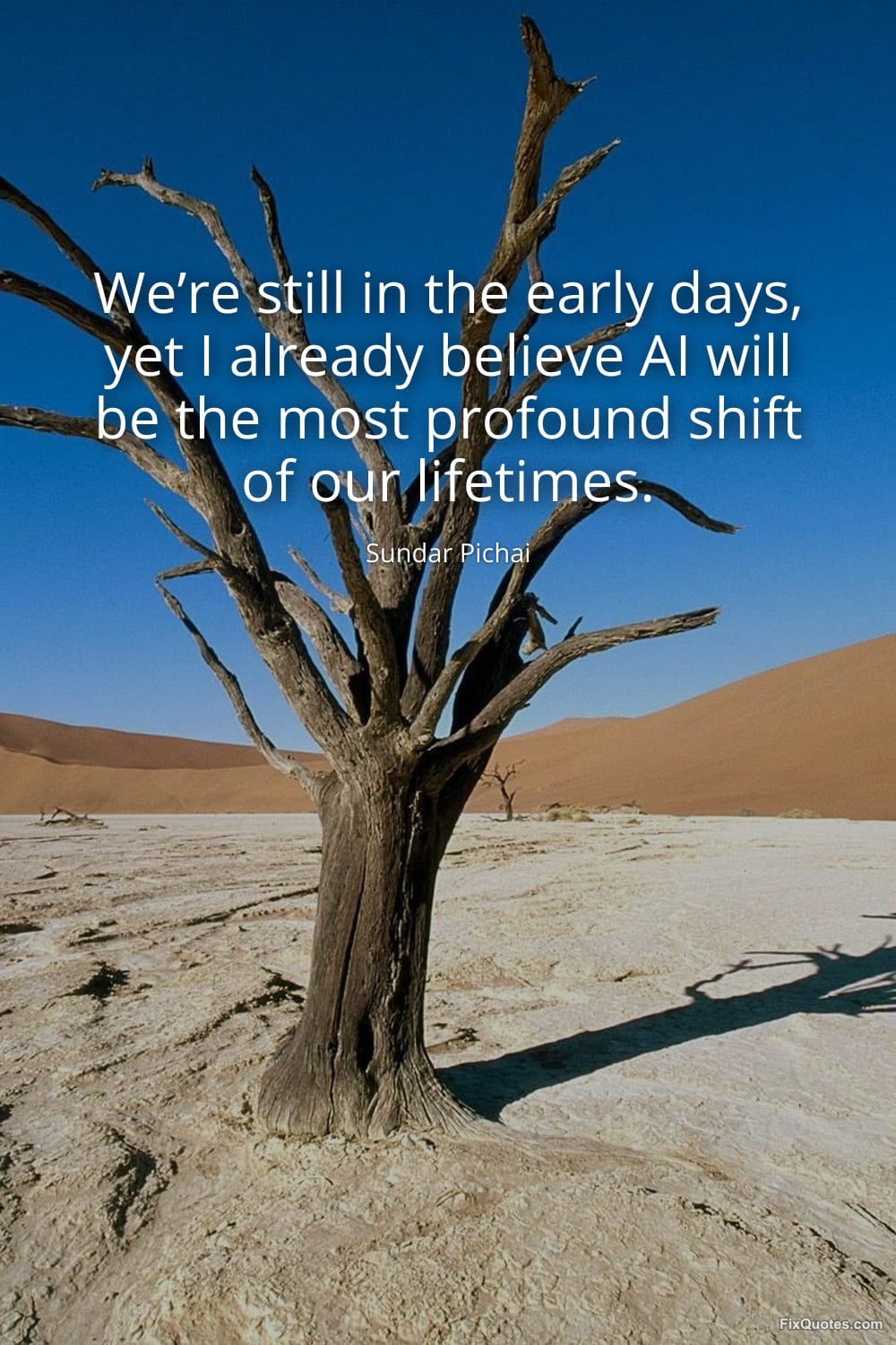 Pichai, Sundar. (2026, April 3). We’re still in the early days, yet I already believe AI will be the most profound shift of our lifetimes. FixQuotes. https://fixquotes.com/quotes/were-still-in-the-early-days-yet-i-already-186513/