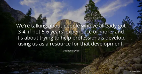 Davies, Siobhan. (2026, January 16). We're talking about people who've already got 3-4, if not 5-6 years' experience or more, and it's about trying to help professionals develop, using us as a resource for that development. FixQuotes. https://fixquotes.com/quotes/were-talking-about-people-whove-already-got-3-4-102981/