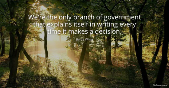 White, Byron. (2026, January 17). We're the only branch of government that explains itself in writing every time it makes a decision. FixQuotes. https://fixquotes.com/quotes/were-the-only-branch-of-government-that-explains-66627/
