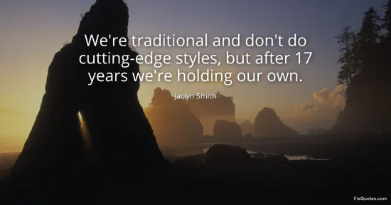 Smith, Jaclyn. (2026, January 16). We're traditional and don't do cutting-edge styles, but after 17 years we're holding our own. FixQuotes. https://fixquotes.com/quotes/were-traditional-and-dont-do-cutting-edge-styles-105949/