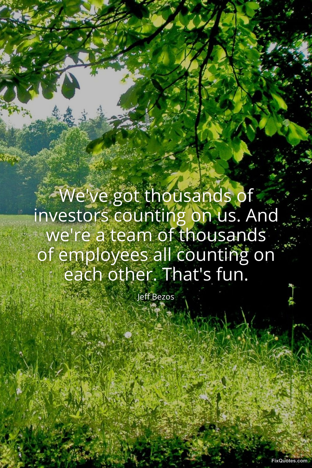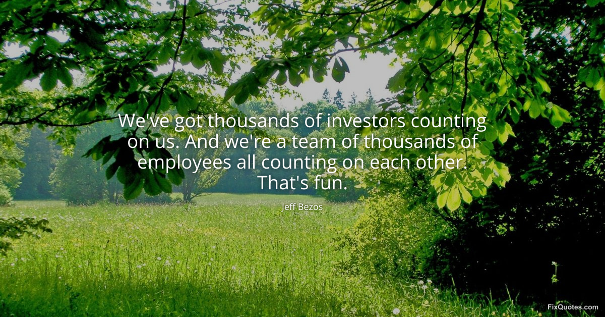 Bezos, Jeff. "We've got thousands of investors counting on us. And we're a team of thousands of employees all counting on each other. That's fun." FixQuotes. March 25, 2026. https://fixquotes.com/quotes/weve-got-thousands-of-investors-counting-on-us-186427/.