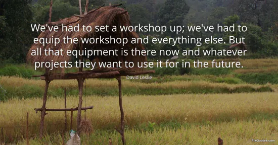 Leslie, David. (2026, January 16). We've had to set a workshop up; we've had to equip the workshop and everything else. But all that equipment is there now and whatever projects they want to use it for in the future. FixQuotes. https://fixquotes.com/quotes/weve-had-to-set-a-workshop-up-weve-had-to-equip-86692/