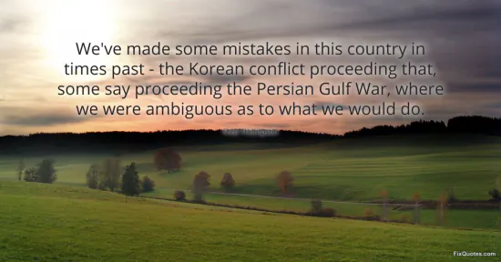 "We've made some mistakes in this country in times past - the Korean conflict proceeding that, some say proceeding the Persian Gulf War, where we were ambiguous as to what we would do." FixQuotes, 17 Jan. 2026, https://fixquotes.com/quotes/weve-made-some-mistakes-in-this-country-in-times-48238/. Accessed 25 Feb. 2026.