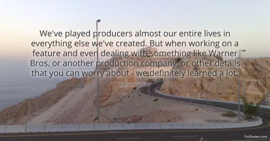 Olsen, Mary-Kate. (2026, January 17). We've played producers almost our entire lives in everything else we've created. But when working on a feature and even dealing with something like Warner Bros. or another production company, or other details that you can worry about - we definitely learned a lot. FixQuotes. https://fixquotes.com/quotes/weve-played-producers-almost-our-entire-lives-in-81679/