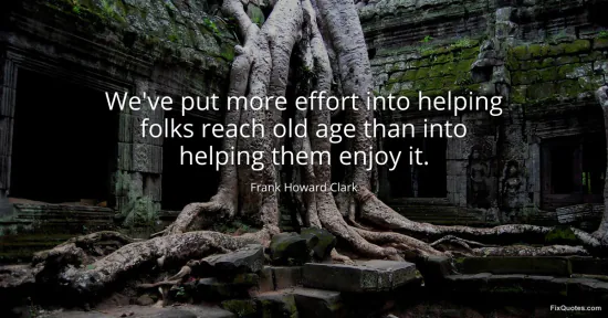 Clark, Frank Howard. "We've put more effort into helping folks reach old age than into helping them enjoy it." FixQuotes. January 17, 2026. https://fixquotes.com/quotes/weve-put-more-effort-into-helping-folks-reach-old-58395/.