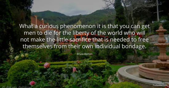 Barton, Bruce. (2026, January 17). What a curious phenomenon it is that you can get men to die for the liberty of the world who will not make the little sacrifice that is needed to free themselves from their own individual bondage. FixQuotes. https://fixquotes.com/quotes/what-a-curious-phenomenon-it-is-that-you-can-get-38777/