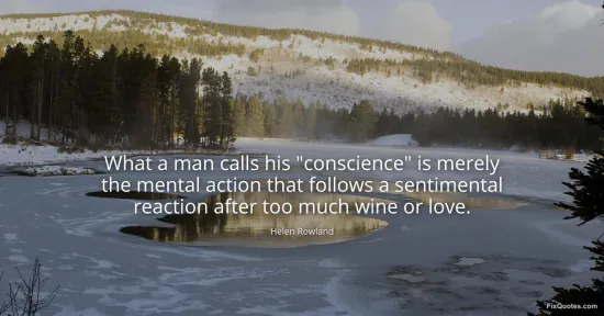 Rowland, Helen. (2026, January 17). What a man calls his "conscience" is merely the mental action that follows a sentimental reaction after too much wine or love. FixQuotes. https://fixquotes.com/quotes/what-a-man-calls-his-conscience-is-merely-the-35760/