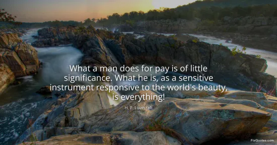 Lovecraft, H. P. "What a man does for pay is of little significance. What he is, as a sensitive instrument responsive to the world's beauty, is everything!" FixQuotes. January 17, 2026. https://fixquotes.com/quotes/what-a-man-does-for-pay-is-of-little-significance-52989/.