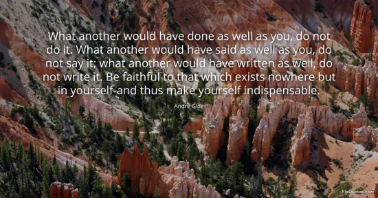 "What another would have done as well as you, do not do it. What another would have said as well as you, do not say it; what another would have written as well, do not write it. Be faithful to that which exists nowhere but in yourself-and thus make yourself indispensable"