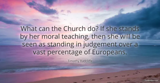 Radcliffe, Timothy. (2026, January 15). What can the Church do? If she stands by her moral teaching, then she will be seen as standing in judgement over a vast percentage of Europeans. FixQuotes. https://fixquotes.com/quotes/what-can-the-church-do-if-she-stands-by-her-moral-156921/