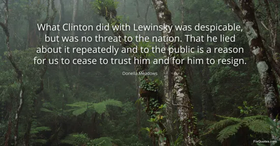 Meadows, Donella. (2026, February 20). What Clinton did with Lewinsky was despicable, but was no threat to the nation. That he lied about it repeatedly and to the public is a reason for us to cease to trust him and for him to resign. FixQuotes. https://fixquotes.com/quotes/what-clinton-did-with-lewinsky-was-despicable-but-15758/