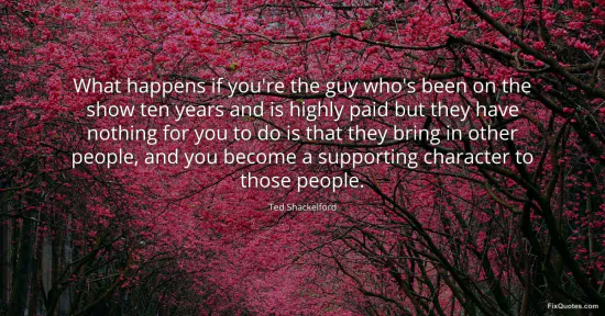 Shackelford, Ted. "What happens if you're the guy who's been on the show ten years and is highly paid but they have nothing for you to do is that they bring in other people, and you become a supporting character to those people." FixQuotes. January 15, 2026. https://fixquotes.com/quotes/what-happens-if-youre-the-guy-whos-been-on-the-153400/.