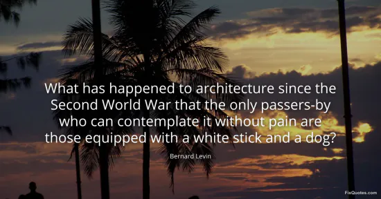 Levin, Bernard. "What has happened to architecture since the Second World War that the only passers-by who can contemplate it without pain are those equipped with a white stick and a dog?" FixQuotes. February 19, 2026. https://fixquotes.com/quotes/what-has-happened-to-architecture-since-the-40870/.