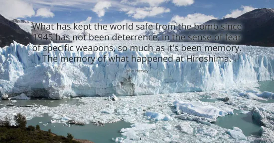 Hersey, John. (2026, January 17). What has kept the world safe from the bomb since 1945 has not been deterrence, in the sense of fear of specific weapons, so much as it's been memory. The memory of what happened at Hiroshima. FixQuotes. https://fixquotes.com/quotes/what-has-kept-the-world-safe-from-the-bomb-since-71412/