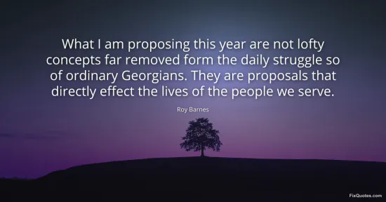 Barnes, Roy. "What I am proposing this year are not lofty concepts far removed form the daily struggle so of ordinary Georgians. They are proposals that directly effect the lives of the people we serve." FixQuotes. January 16, 2026. https://fixquotes.com/quotes/what-i-am-proposing-this-year-are-not-lofty-122561/.