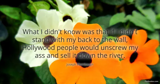 Wambaugh, Joseph. "What I didn't know was that if I didn't stand with my back to the wall, Hollywood people would unscrew my ass and sell it down the river." FixQuotes. January 16, 2026. https://fixquotes.com/quotes/what-i-didnt-know-was-that-if-i-didnt-stand-with-86874/.