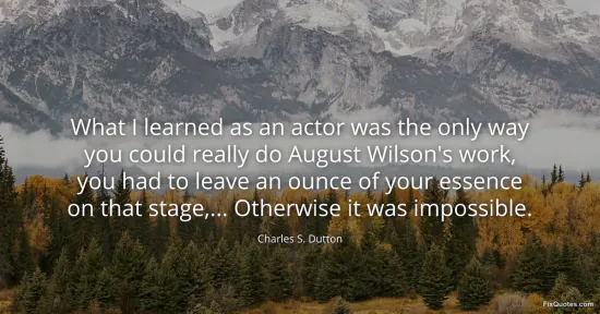 Dutton, Charles S. "What I learned as an actor was the only way you could really do August Wilson's work, you had to leave an ounce of your essence on that stage,... Otherwise it was impossible." FixQuotes. January 17, 2026. https://fixquotes.com/quotes/what-i-learned-as-an-actor-was-the-only-way-you-66958/.