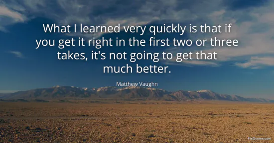 Vaughn, Matthew. (2026, January 17). What I learned very quickly is that if you get it right in the first two or three takes, it's not going to get that much better. FixQuotes. https://fixquotes.com/quotes/what-i-learned-very-quickly-is-that-if-you-get-it-77321/