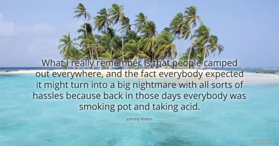 Rivers, Johnny. (2026, January 14). What I really remember is that people camped out everywhere, and the fact everybody expected it might turn into a big nightmare with all sorts of hassles because back in those days everybody was smoking pot and taking acid. FixQuotes. https://fixquotes.com/quotes/what-i-really-remember-is-that-people-camped-out-87664/