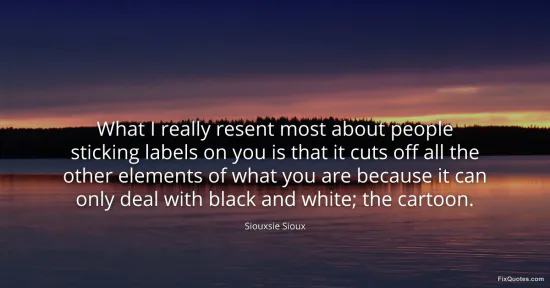 Sioux, Siouxsie. (2026, January 16). What I really resent most about people sticking labels on you is that it cuts off all the other elements of what you are because it can only deal with black and white; the cartoon. FixQuotes. https://fixquotes.com/quotes/what-i-really-resent-most-about-people-sticking-116776/