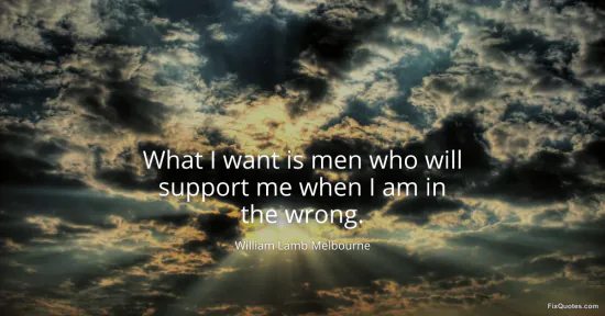 Melbourne, William Lamb. (2026, January 16). What I want is men who will support me when I am in the wrong. FixQuotes. https://fixquotes.com/quotes/what-i-want-is-men-who-will-support-me-when-i-am-111422/