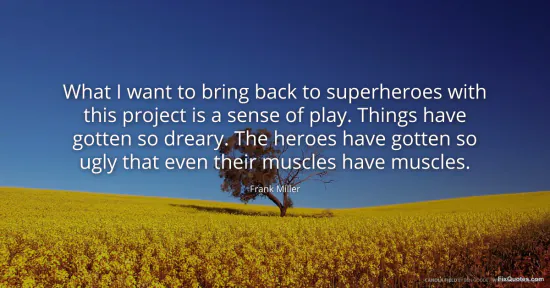 Miller, Frank. "What I want to bring back to superheroes with this project is a sense of play. Things have gotten so dreary. The heroes have gotten so ugly that even their muscles have muscles." FixQuotes. January 16, 2026. https://fixquotes.com/quotes/what-i-want-to-bring-back-to-superheroes-with-110592/.
