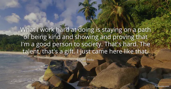 "What I work hard at doing is staying on a path of being kind and showing and proving that I'm a good person to society. That's hard. The talent, that's a gift. I just came here like that"