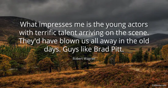 Wagner, Robert. "What impresses me is the young actors with terrific talent arriving on the scene. They'd have blown us all away in the old days. Guys like Brad Pitt." FixQuotes. January 17, 2026. https://fixquotes.com/quotes/what-impresses-me-is-the-young-actors-with-77142/.