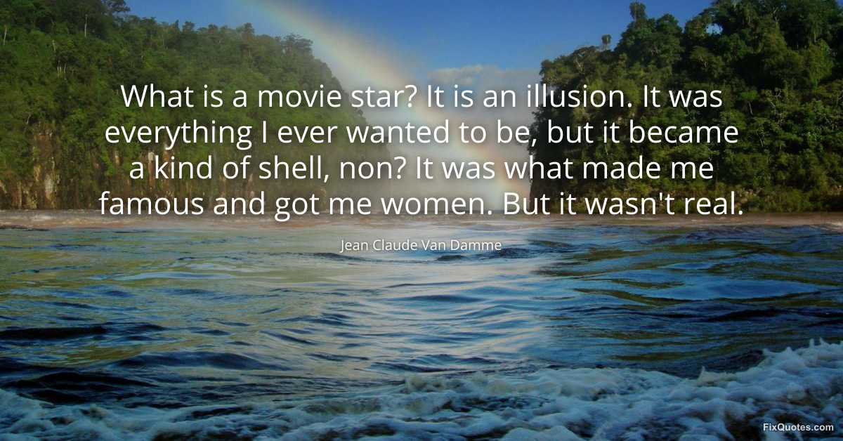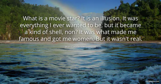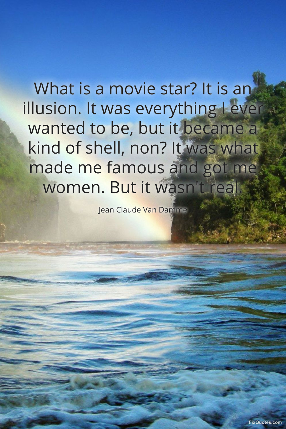 Damme, Jean Claude Van. (2026, January 17). What is a movie star? It is an illusion. It was everything I ever wanted to be, but it became a kind of shell, non? It was what made me famous and got me women. But it wasn't real. FixQuotes. https://fixquotes.com/quotes/what-is-a-movie-star-it-is-an-illusion-it-was-70256/