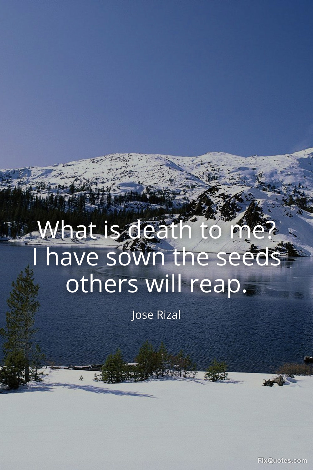 Rizal, Jose. (2026, February 10). What is death to me? I have sown the seeds others will reap. FixQuotes. https://fixquotes.com/quotes/what-is-death-to-me-i-have-sown-the-seeds-others-185083/
