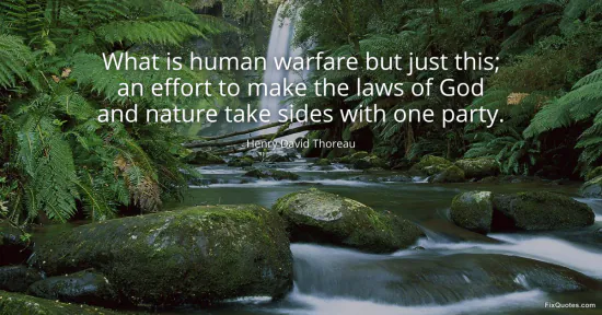 Thoreau, Henry David. (2026, January 17). What is human warfare but just this; an effort to make the laws of God and nature take sides with one party. FixQuotes. https://fixquotes.com/quotes/what-is-human-warfare-but-just-this-an-effort-to-28794/
