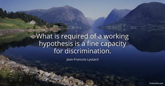 Lyotard, Jean-Francois. "What is required of a working hypothesis is a fine capacity for discrimination." FixQuotes. January 18, 2026. https://fixquotes.com/quotes/what-is-required-of-a-working-hypothesis-is-a-2758/.