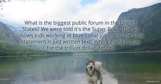 Blades, Joan. (2026, January 15). What is the biggest public forum in the United States? We were told it's the Super Bowl. The ad shows kids working at blue-collar jobs, and the final statement is just written text: Who's going to pay for the trillion dollar deficit? FixQuotes. https://fixquotes.com/quotes/what-is-the-biggest-public-forum-in-the-united-163989/
