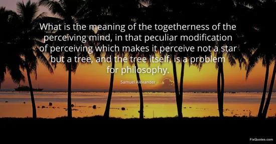 Alexander, Samuel. (2026, January 17). What is the meaning of the togetherness of the perceiving mind, in that peculiar modification of perceiving which makes it perceive not a star but a tree, and the tree itself, is a problem for philosophy. FixQuotes. https://fixquotes.com/quotes/what-is-the-meaning-of-the-togetherness-of-the-65635/