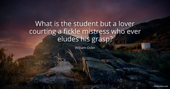 Osler, William. "What is the student but a lover courting a fickle mistress who ever eludes his grasp?" FixQuotes. January 16, 2026. https://fixquotes.com/quotes/what-is-the-student-but-a-lover-courting-a-fickle-98034/.